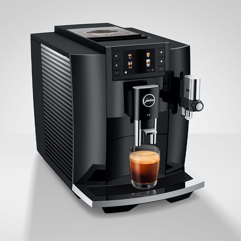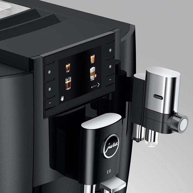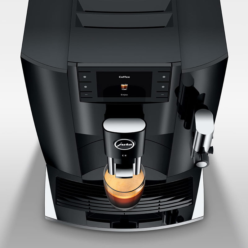 Die jüngste Generation der E8 wird den hohen Ansprüchen, die an die Weiterentwicklung des erfolgreichsten Vollautomaten-Modells von JURA gestellt werden, in allen Belangen gerecht. Sie begeistert mit großartigen Kaffeeresultaten, besticht durch einfachste Bedienung und setzt Zeichen mit ihrem modernen, schlanken Design.