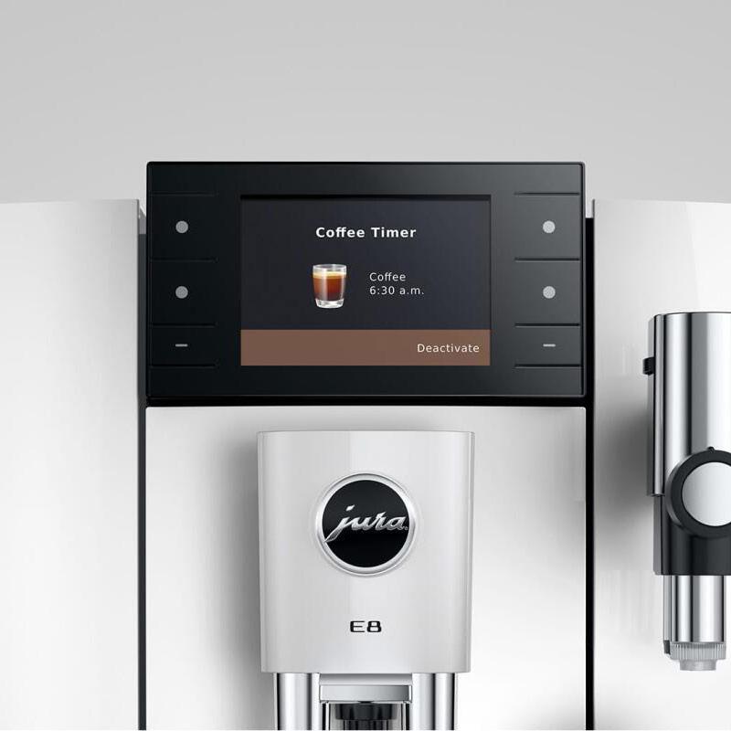 Die jüngste Generation der E8 wird den hohen Ansprüchen, die an die Weiterentwicklung des erfolgreichsten Vollautomaten-Modells von JURA gestellt werden, in allen Belangen gerecht. Sie begeistert mit großartigen Kaffeeresultaten, besticht durch einfachste Bedienung und setzt Zeichen mit ihrem modernen, schlanken Design.