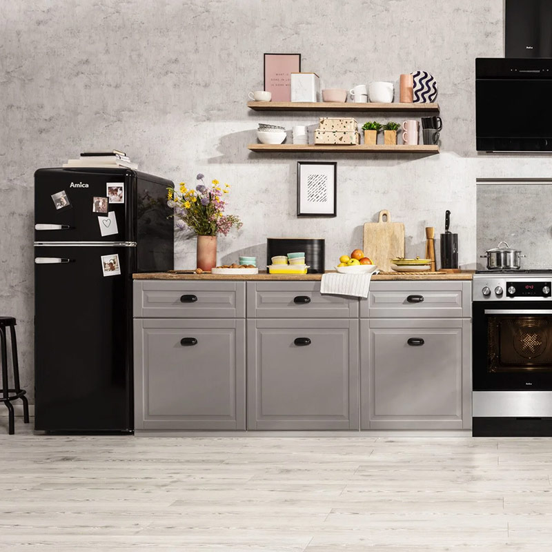 Kühl-/Gefrierkombination Amica KGC 15634 S Schwarz Black Olives - Retro
