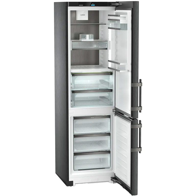 Die Liebherr CBNbsa 575i Prime BioFresh NoFrost ist eine freistehende Kühl-Gefrierkombination, die moderne Kühltechnologie mit durchdachter Ausstattung verbindet. Wenn Sie eine hochwertige Kühl-Gefrierkombination kaufen möchten, die Frische, Komfort und Alltagstauglichkeit vereint, ist dieses Modell eine überzeugende Wahl. Dank BioFresh bleiben empfindliche Lebensmittel wie Obst, Gemüse, Fleisch und Milchprodukte deutlich länger frisch. Die NoFrost-Technologie verhindert Eisbildung im Gefrierteil, sodass manuelles Abtauen entfällt. Mit einem großzügigen Gesamtvolumen bietet die Kombination ausreichend Platz für Ihren Wocheneinkauf und mehr. Die DuoCooling-Technologie sorgt für getrennte Kühlkreisläufe und verhindert so Geruchsübertragung zwischen Kühl- und Gefrierbereich. Weitere Highlights sind die integrierte SmartDeviceBox, das Touch & Swipe-Display sowie die LED-Beleuchtung für optimale Übersicht im Innenraum.