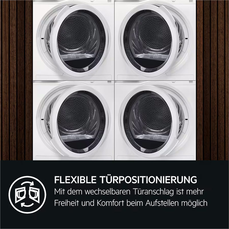 - Reversierautomatik: Die Drehrichtung der Trommel wird immer wieder geändert für eine gleichmäßige und schonende Trocknung