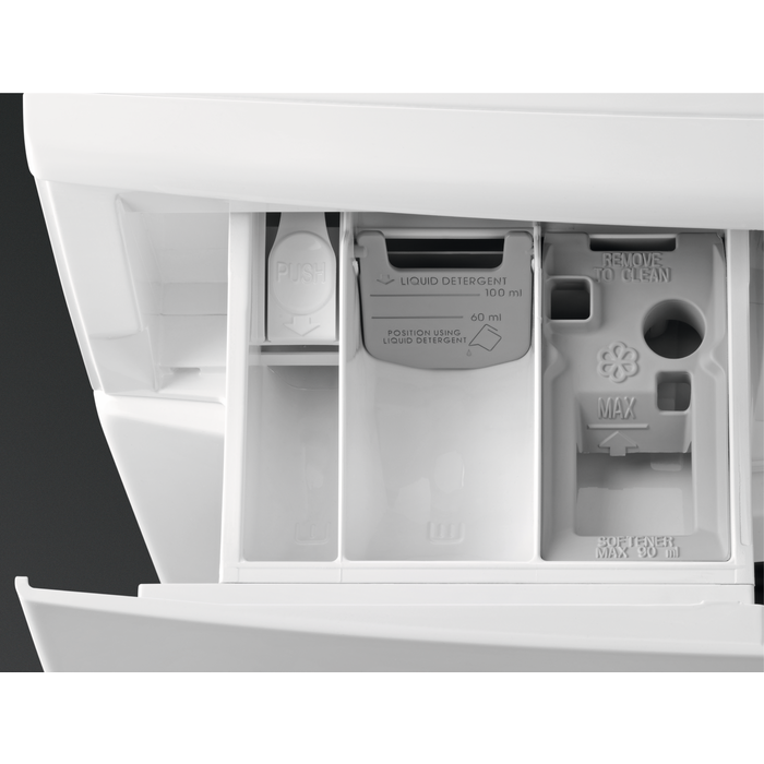 - Integrierte Flüssigwaschmitteleinspülung