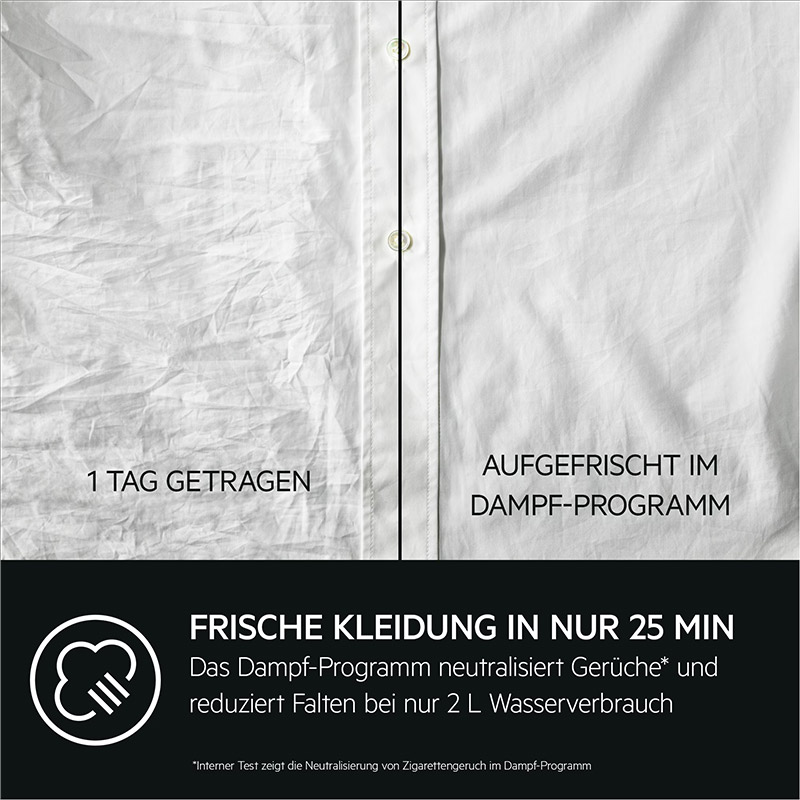 - ProSteam® Knitterschutz durch Dampf zuschaltbar am Ende des Waschprogramms